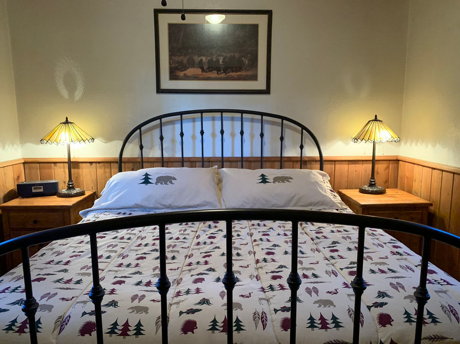 Large one bedroom cottage with king size bed - Two daybeds with pullout mattress and wood burning fireplace in living area - Kitchen and dining area - Bathtub/shower - Sleeps 6 max. (Not recommended for 6 adults)